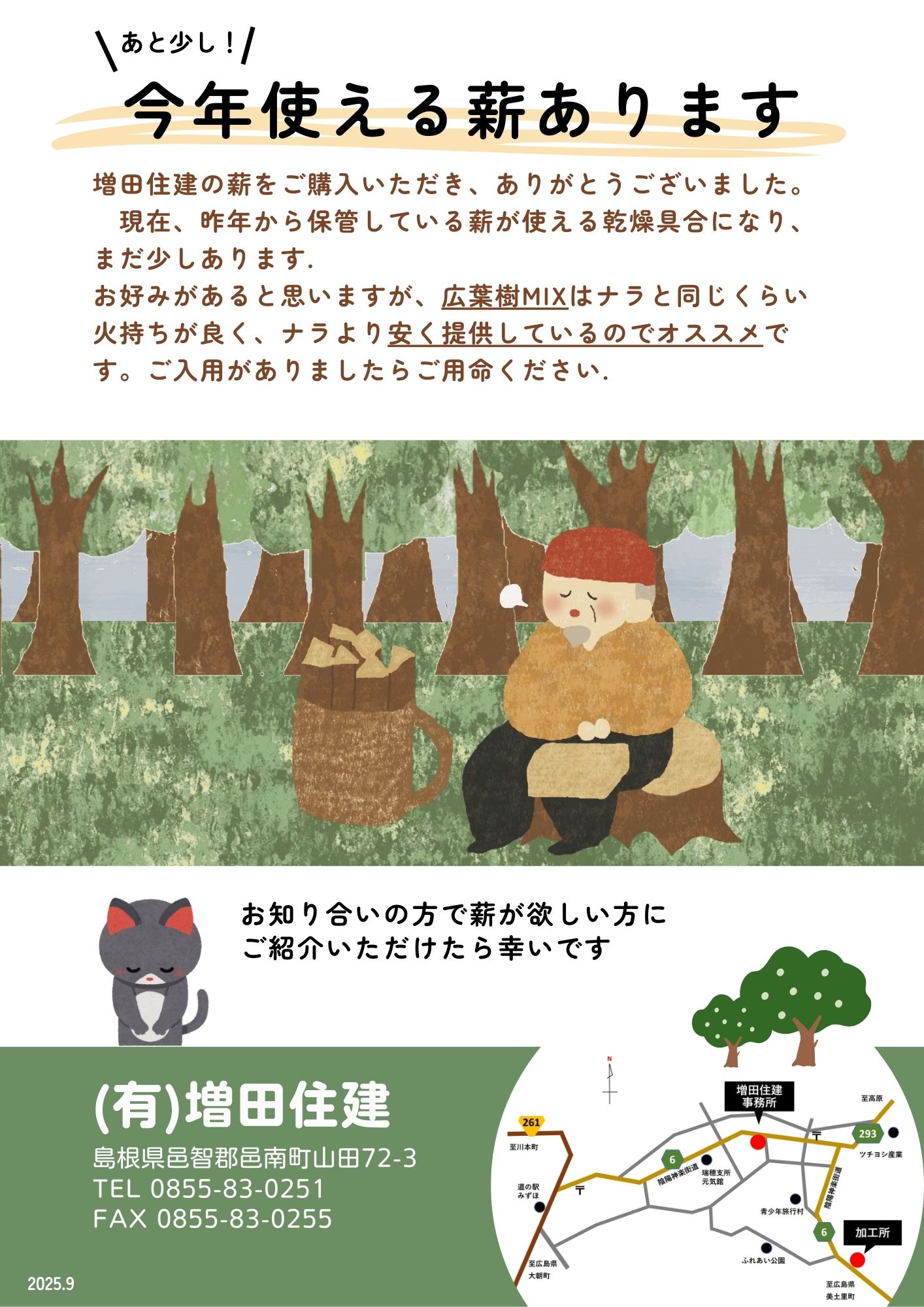 2023年4月から始まった薪の販売では地域の方だけでなく広島県南部からもご利用いただき、誠にありがとうございます。